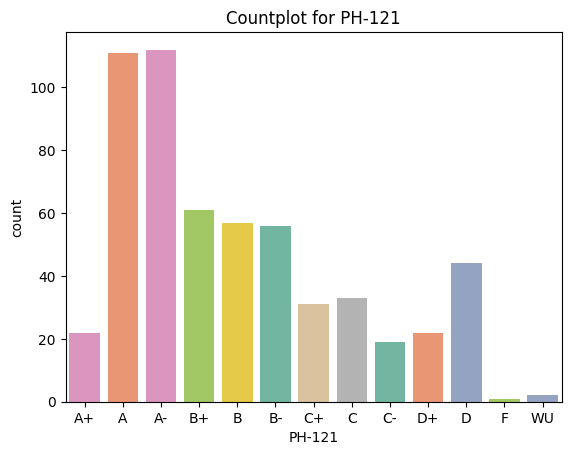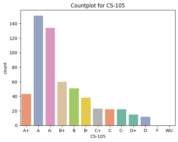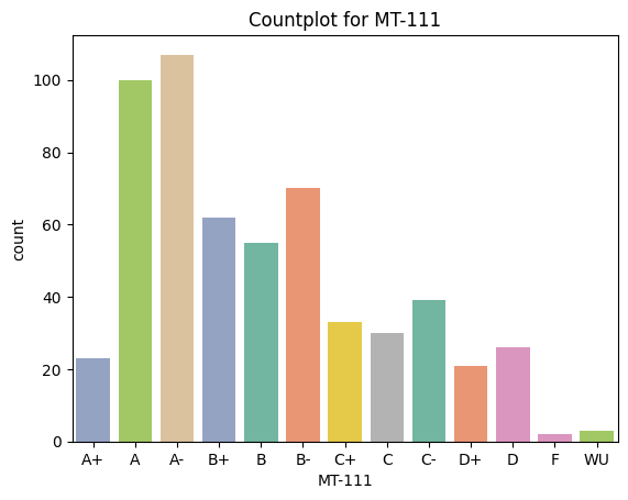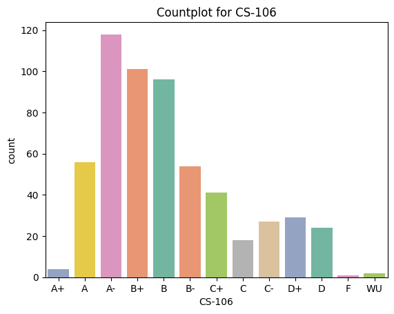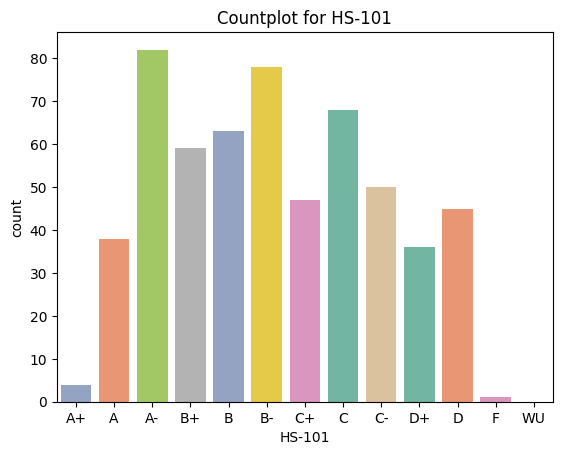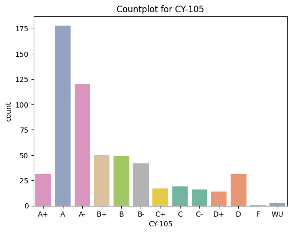 grade_list = ['A+', 'A', 'A-', 'B+', 'B', 'B-', 'C+', 'C', 'C-', 'D+', 'D', 'F', 'WU']Countplot
