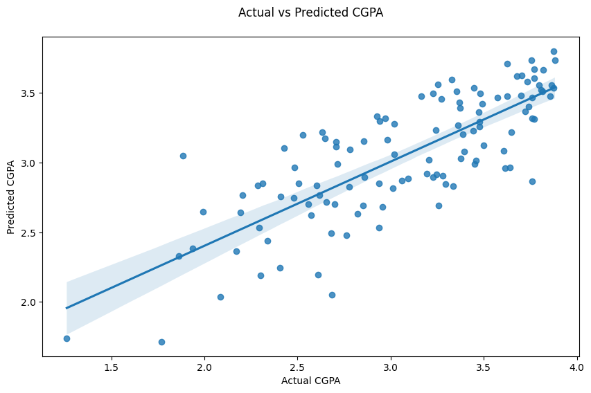 output = pd.DataFrame({'Actual CGPA': y_test, 'Predicted CGPA': y_pred})